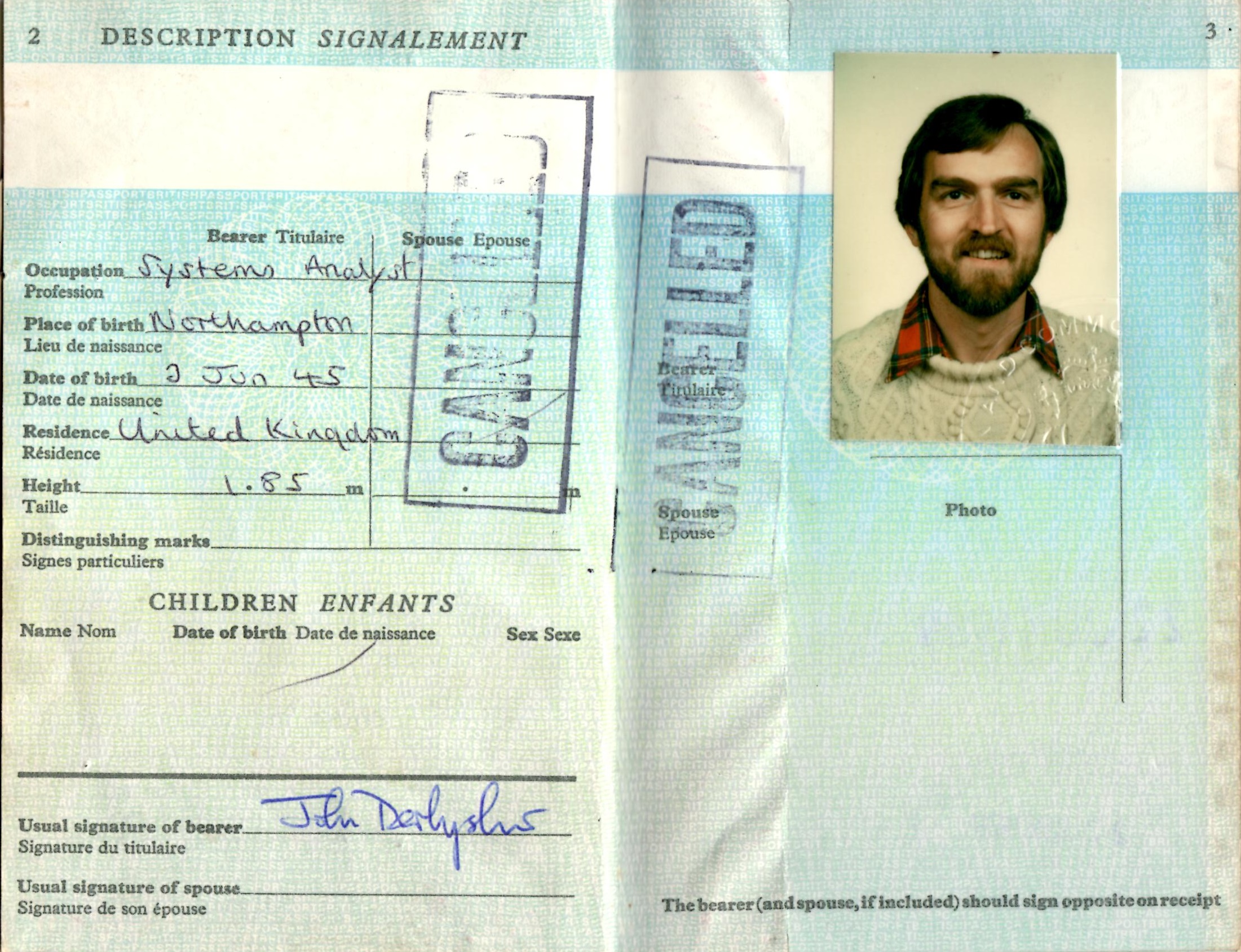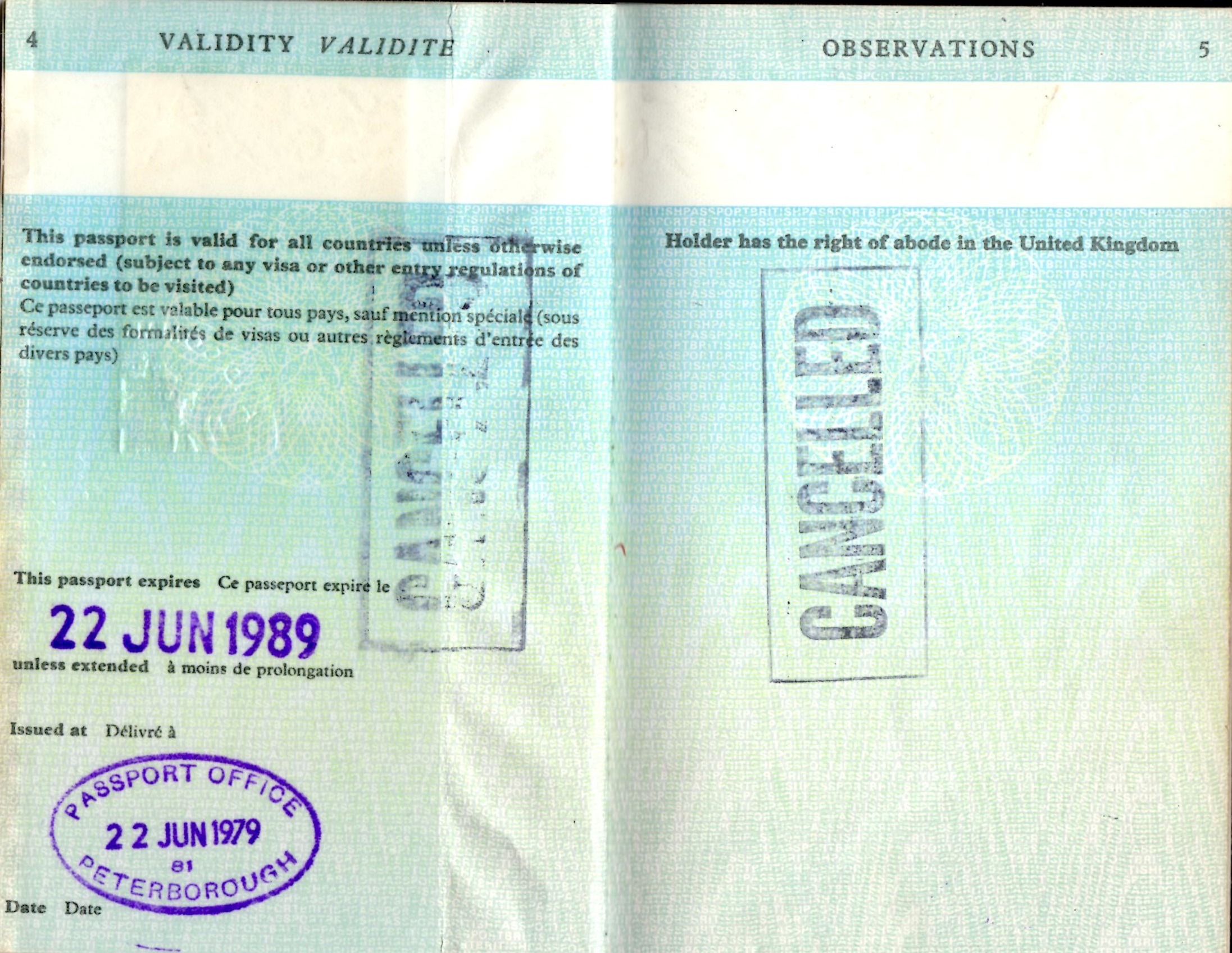 This passport was issued on June 22nd, 1979 in Peterborough. Since returning from the U.S.A. in October the previous year, I had been killing time at my parents' home in Northampton, filling in with some teaching at a local community college. Probably I had already signed up for my postgraduate Chinese course in London, 1979-80.