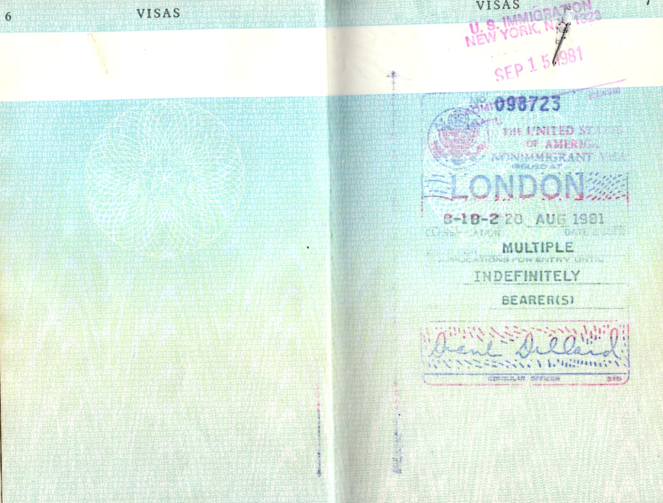 | 8/20/81 | U.S. visa, B-2. |