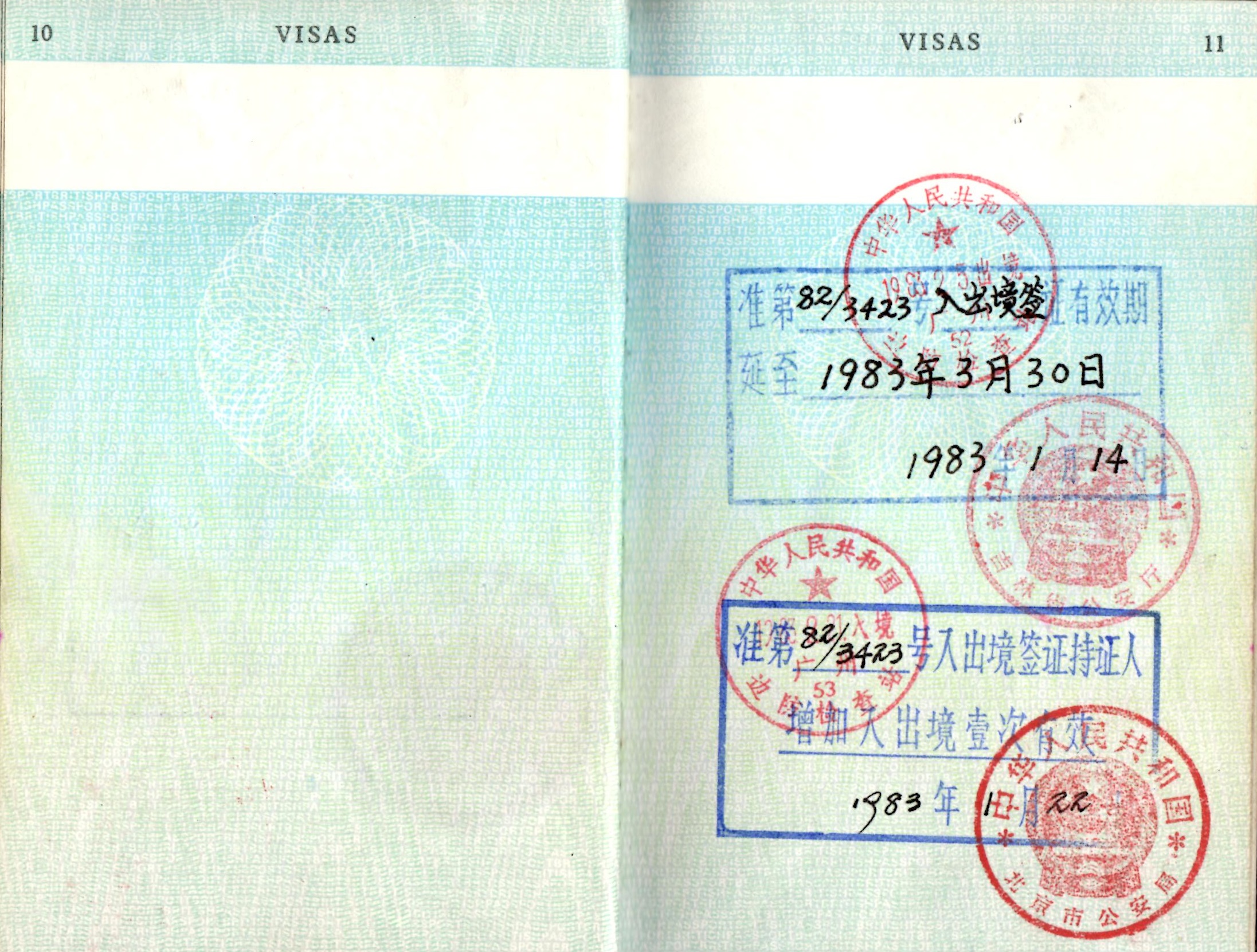| 9/20/82 | China visa. |