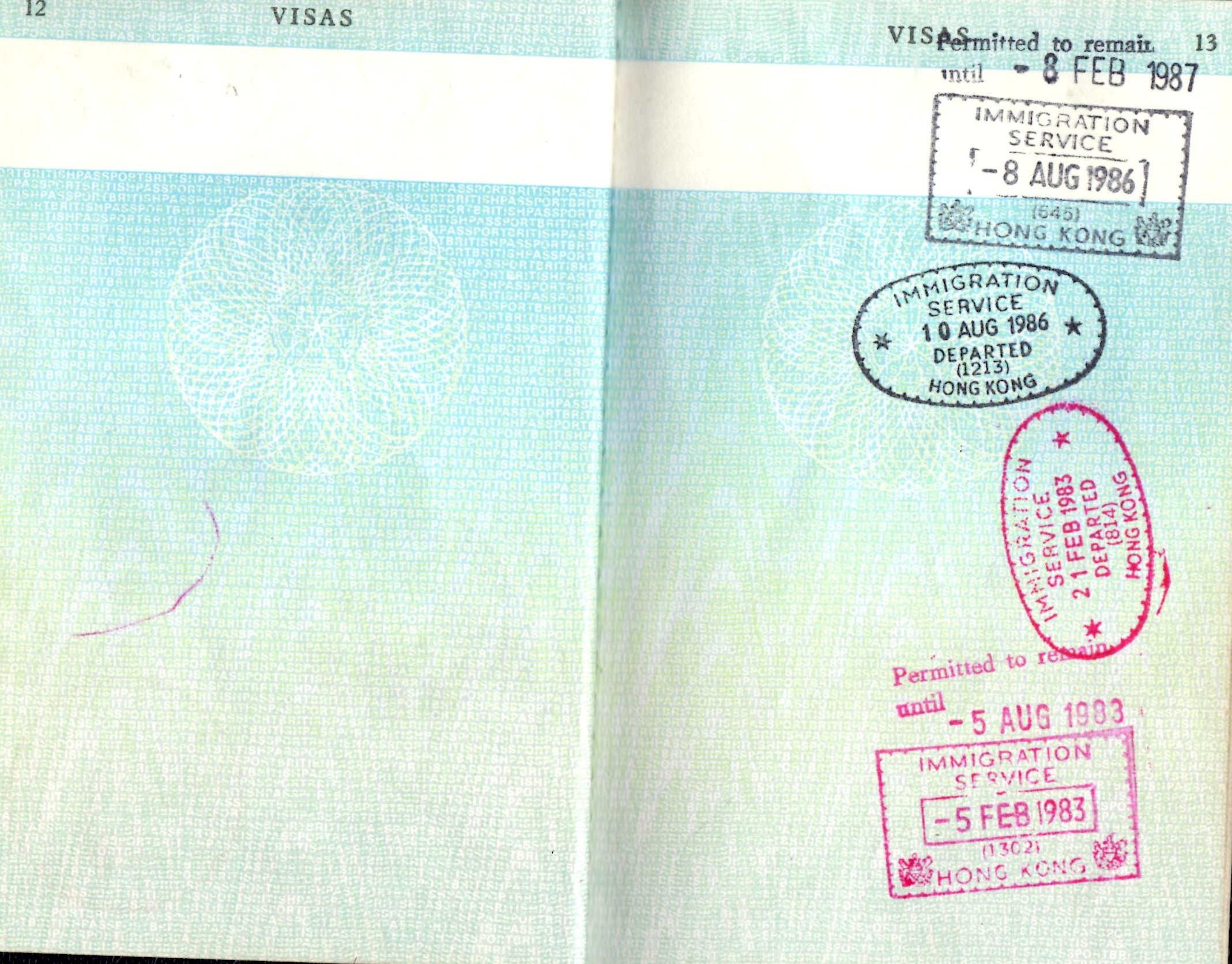 I have listed these stamps below in chronological order. That's not necessarily the order they appear in if you just flip through the passport's pages. A later stamp may be on an earlier page. The location of a stamp is entirely at the whim of the stamping official. Clicking on the date at left will bring up the page with the stamp.