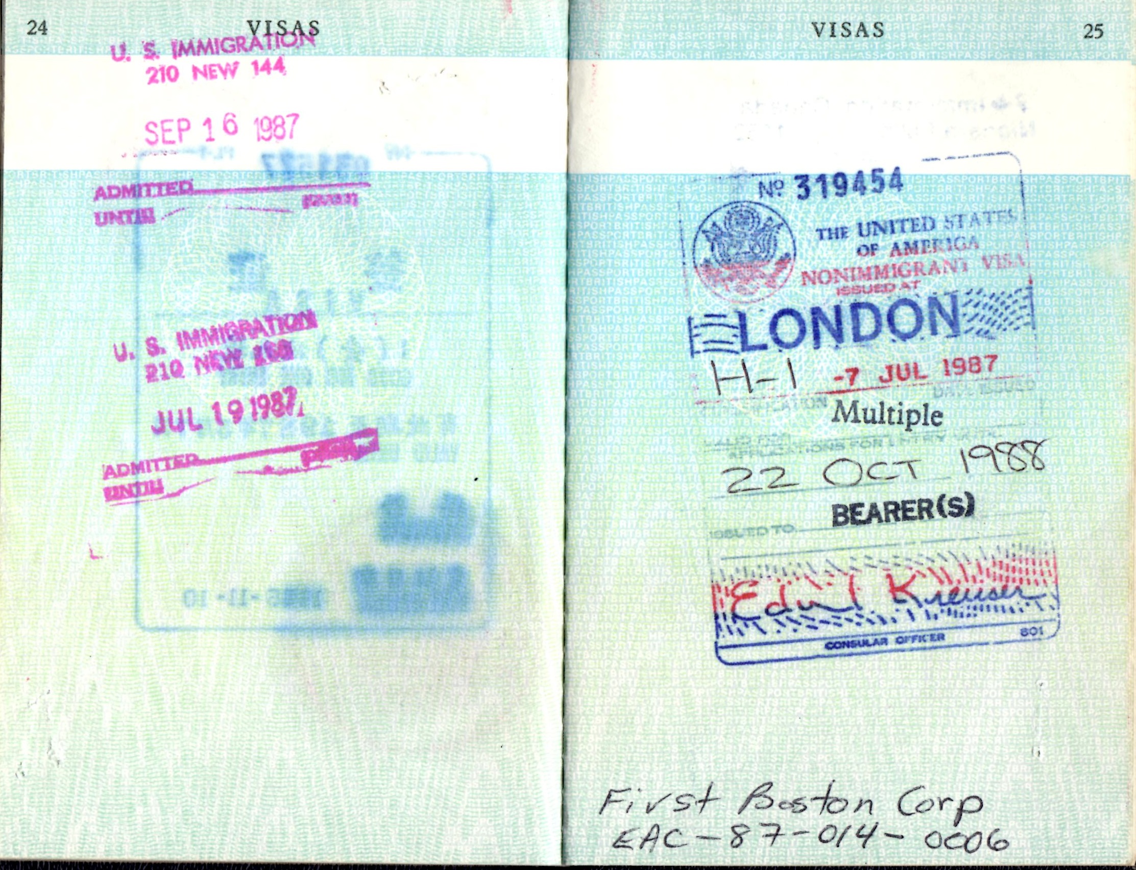 | 7/7/87 | U.S. visa (H-1) renewed. |