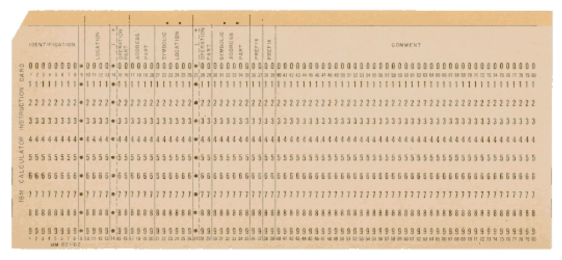 There were no proper terminals attached to these monsters, only a teletype for the operator. Data came out printed on green-lined sheets of paper. It went in on punched cards.