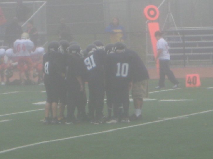 In the huddle. I'm number 91. It was a damp, misty day. |