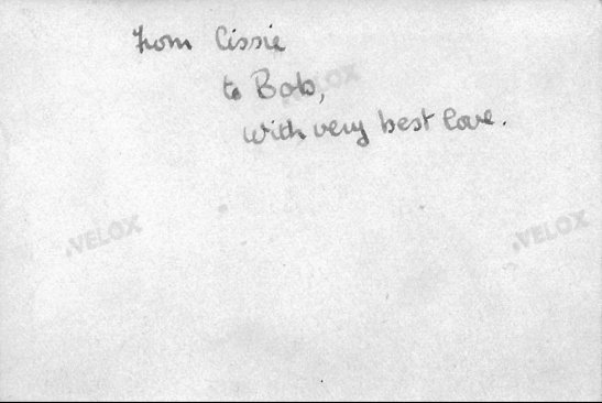 A note on the back of the previous photograph, in Cissie's handwriting: "From Cissie to Bob, with very best love." Bob was my Dad. I suppose this was sent to him when he was abroad. |