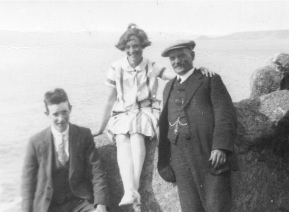 Uncle Tommy, Auntie Cissie, and Grandad Derbyshire, at Land's End. |