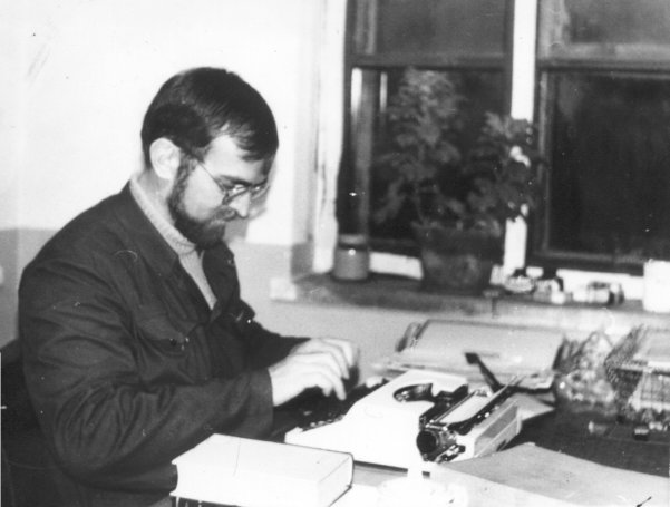Typing in my office. The college provided me with a very good portable typewriter, some Hungarian model. |