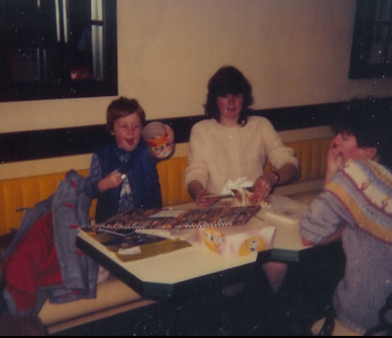 Marcus' 6th birthday party, at Macdonald's in Northampton. Also present: Tessa, a friend of Tessa's. Picture enclosed in a letter from Mum to me dated January 31, 1983 |