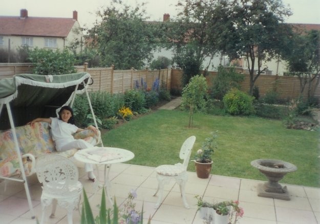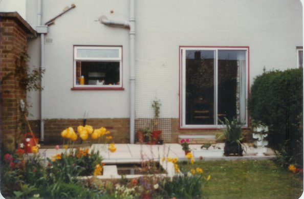 - Looking north along the back garden in 1987 (with Rosie).