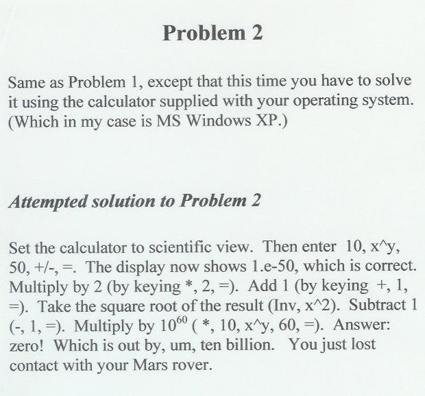 Answer: zero! Which is out by, um, ten billion. You just lost contact with your Mars lander.