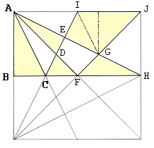 First, note that because of similar triangles AIE, AHJ, etc., all the four angles at E are right angles. (It's even easier to see if you draw the other four corner-to-midpoint lines, JB etc.)
